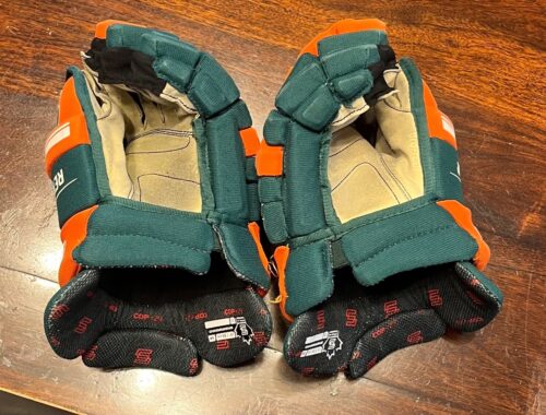 Gants de hockey 13 pouces porté une saison. En bon état. Maison sans fumée ni animaux.